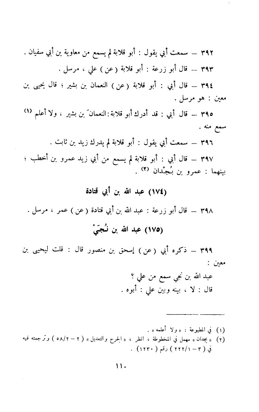 394 - قَالَ أَبِي أَبُو قِلَابَةَ عَنِ النُّعْمَانَ بْنِ بَشِيرٍ قَالَ يَحْيَى بْنُ مَعِينٍ هُوَ مُرْسَلٌ