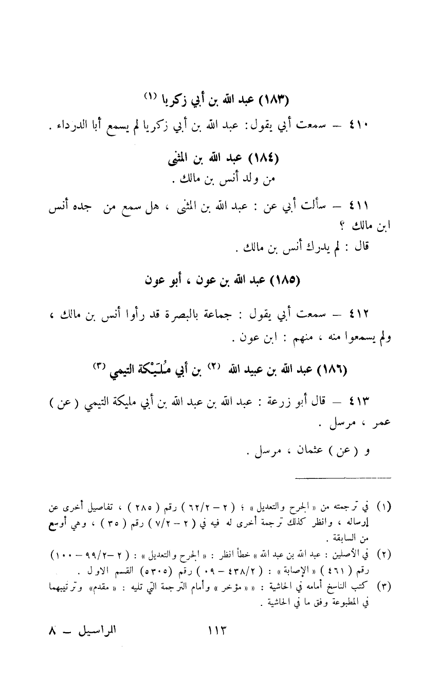 413 - قَالَ أَبُو زُرْعَةَ عَبْدُ اللَّهِ بْنُ عَبْدِ اللَّهِ بْنِ أَبِي مُلَيْكَةَ التَّيْمِيِّ عَنْ عُمَرَ مُرْسَلٌ وَعَنْ عُثْمَانَ مُرْسَلٌ
