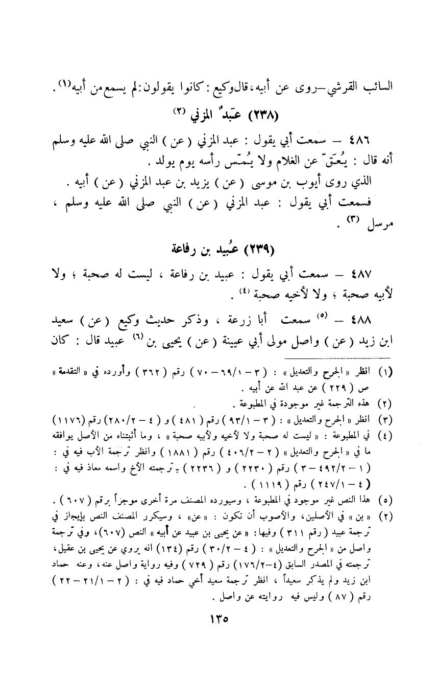 487 - سَمِعْتُ أَبِي يَقُولُ عُبَيْدَ بْنُ رِفَاعَةَ لَيْسَتْ لَهُ صُحْبَةٌ وَلَا لِأَبِيهِ صُحْبَةٌ وَلَا لِأَخِيهِ صُحْبَةٌ