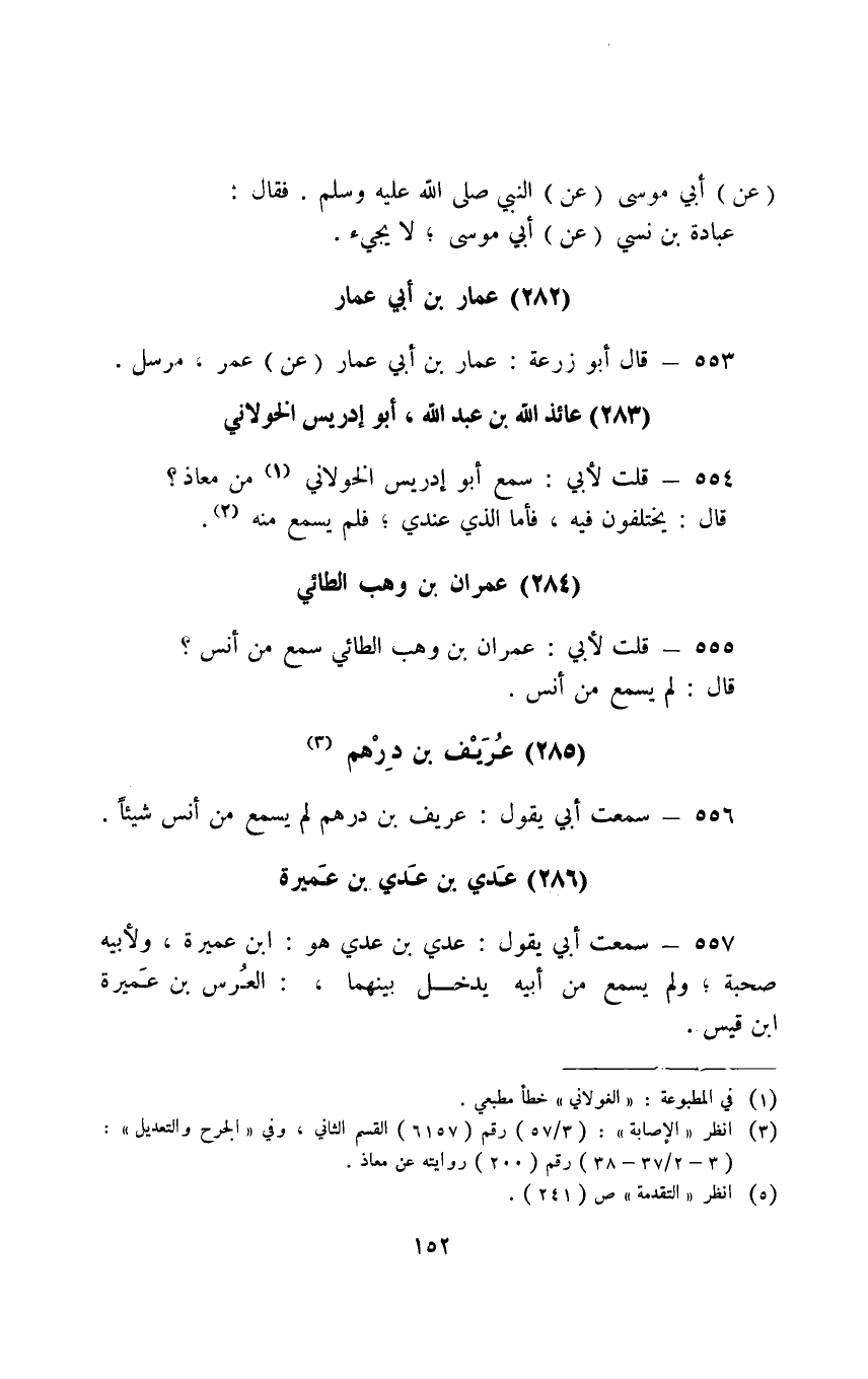 554 - قُلْتُ لِأَبِي سَمِعَ أَبُو إِدْرِيسَ الْخُولَانِيُّ مِنْ مُعَاذٍ قَالَ يَخْتَلِفُونَ فِيهِ فَأَمَّا الَّذِي عِنْدِي فَلَمْ يَسْمَعْ مِنْهُ