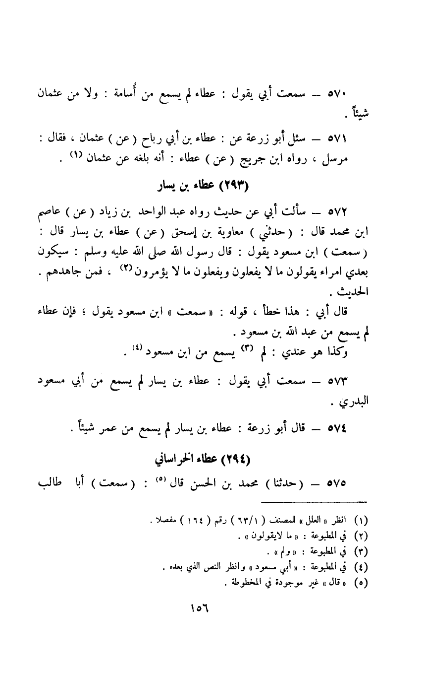 571 - سُئِلَ أَبُو زُرْعَةَ عَنْ عَطَاءَ بْنِ أَبِي رَبَاحٍ عَنْ عُثْمَانَ فَقَالَ مُرْسَلٌ رَوَاهُ ابْنُ جُرَيْجٍ عَنْ عَطَاءَ أَنَّهُ بَلَغَهُ عَنْ عُثْمَانَ