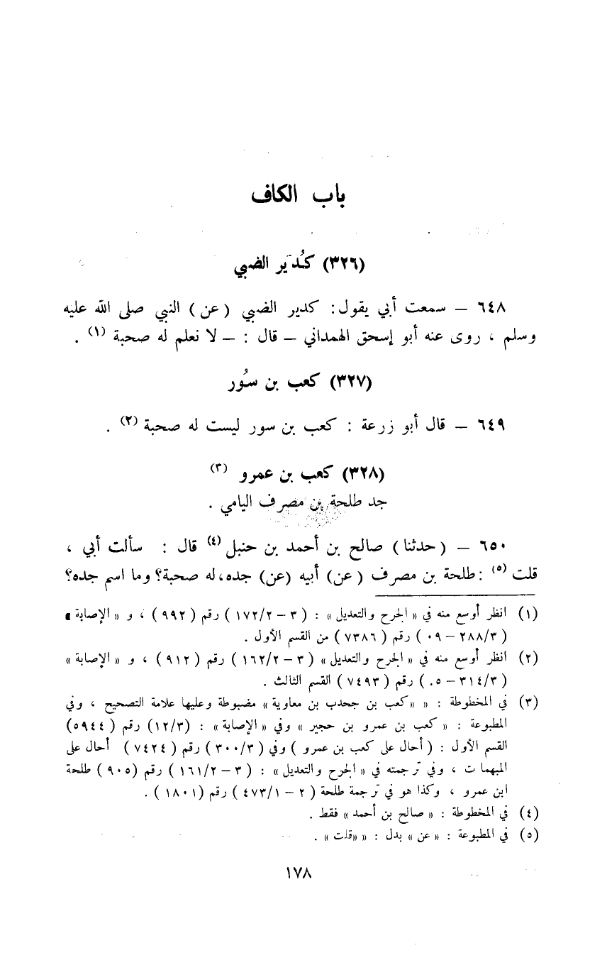 328 - كَعْبُ بْنُ عَمْرو جَدُّ طَلْحَةَ بْنِ مُصْرَفٍ الْيَامِيُّ