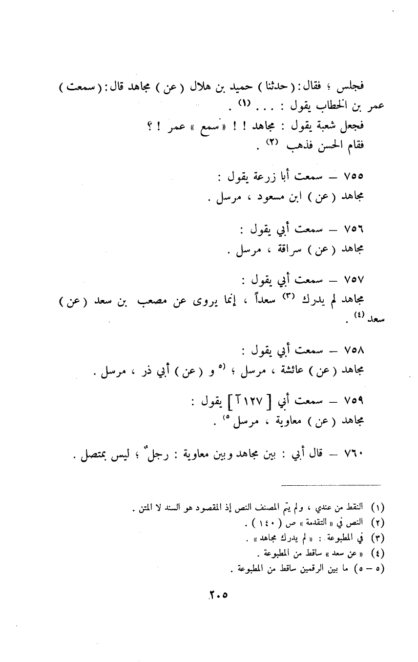 759 - سَمِعْتُ أَبِي يَقُولُ مُجَاهِدٌ عَنْ مُعَاوِيَةَ مُرْسَلٌ