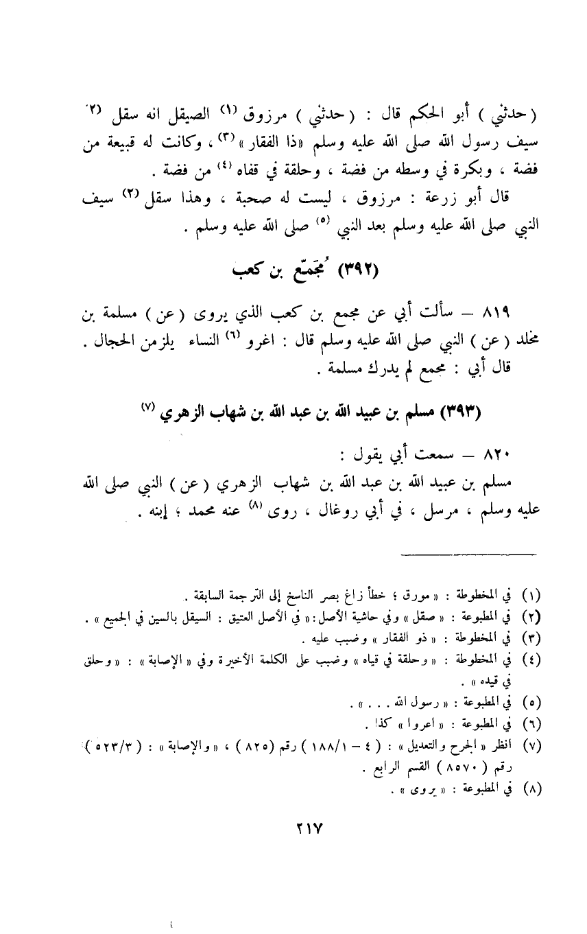 820 - سَمِعْتُ أَبِي يَقُولُ مُسْلِمُ بن عبيد الله بْنِ عَبْدِ اللَّهِ بْنِ شِهَابٍ الزُّهْرِيُّ عَنِ النَّبِيِّ صَلَّى اللَّهُ عَلَيْهِ وَسَلَّمَ مُرْسَلٌ فِي أَبِي رَوْغَالٍ رَوَى عَنْهُ مُحَمَّد ابْنُهُ