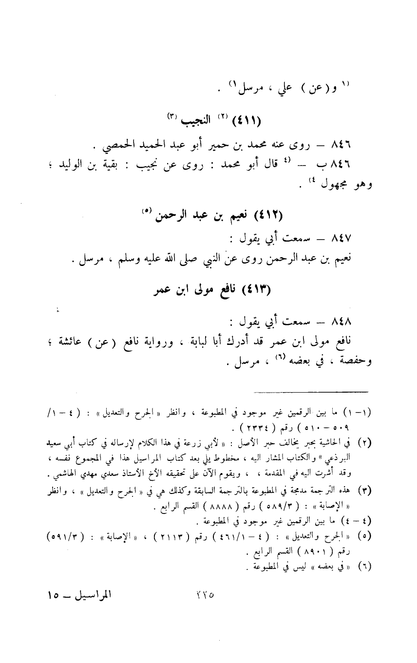 847 - سَمِعْتُ أَبِي يَقُولُ نُعَيْمُ بْنُ عَبْدِ الرَّحْمَنِ رَوَى عَنِ النَّبِيِّ صَلَّى اللَّهُ عَلَيْهِ وَسَلَّمَ مُرْسَلٌ