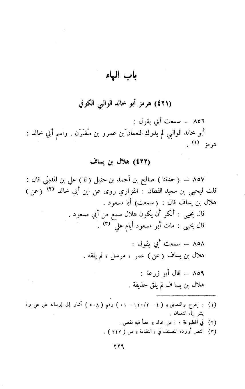 856 - سَمِعْتُ أَبِي يَقُولُ أَبُو خَالِدٍ الْوَالِبِيُّ لَمْ يُدْرِكِ النُّعْمَانُ بْنُ عَمْرِو بْنِ مُقَرَّنٍ وَاسْمُ أَبِي خَالِدٍ هُرْمُزٌ