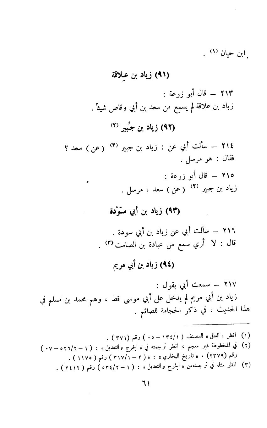 215 - قَالَ أَبُو زُرْعَةَ زِيَادُ بْنُ جُبَيْرٍ عَنْ سَعْدٍ مُرْسَلٌ