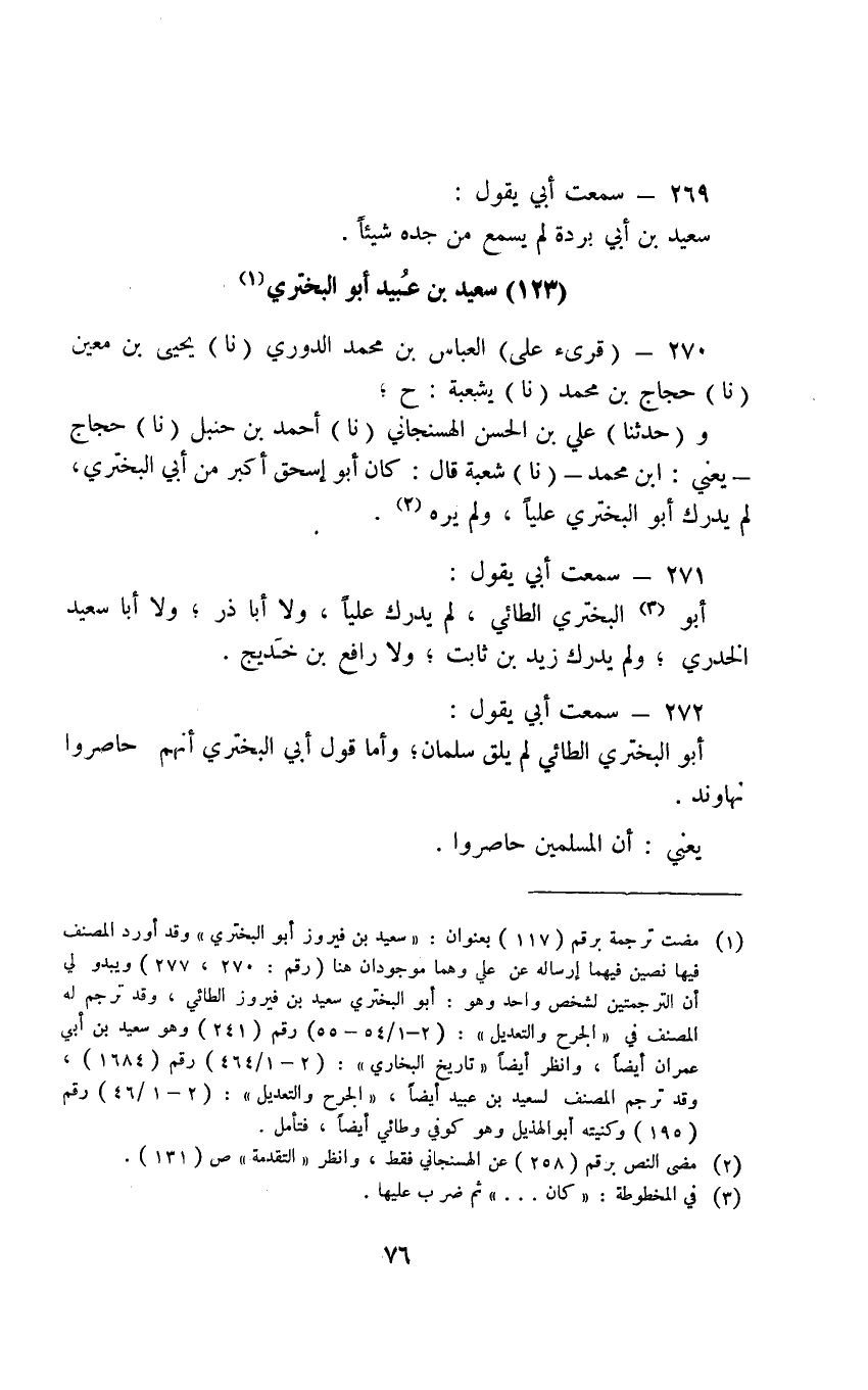 272 - سَمِعْتُ أَبِي يَقُولُ أَبِو الْبَخْتَرِيِّ الطَّائِيِّ لَمْ يَلْقَ سَلْمَانَ وَأَمَّا قَوْلُ أَبِي الْبَخْتَرِيِّ أَنَّهُمْ حَاصَرُوا نَهَاوَنْدَ يَعْنِي أَنَّ الْمُسْلِمِينَ حَاصَرُوا
