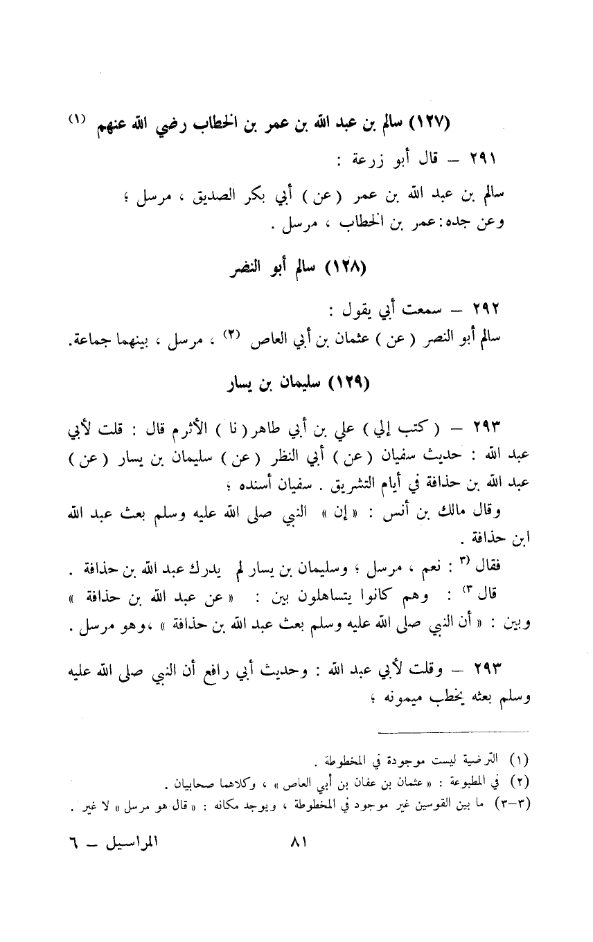 291 - قَالَ أَبُو زُرْعَةَ سَالِمُ بْنُ عَبْدِ اللَّهِ بْنِ عُمَرَ عَنْ أَبِي بَكْرٍ الصِّدِّيقِ مُرْسَلٌ وَعَنْ جَدِّهِ عُمَرَ بْنَ الْخَطَّابِ مُرْسَلٌ