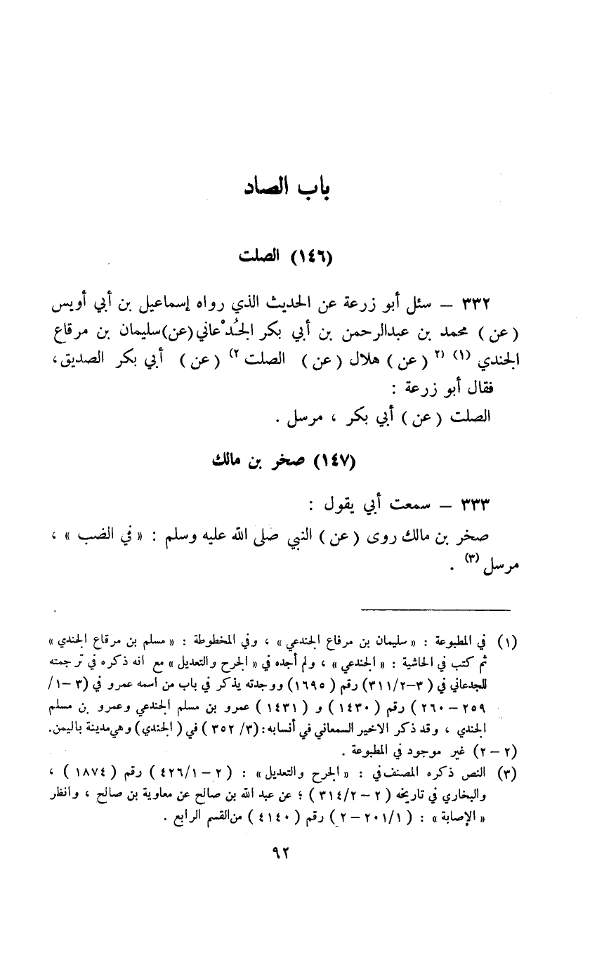 332 - سُئِلَ أَبُو زُرْعَةَ عَنْ الْحَدِيثِ الَّذِي رَوَاهُ إِسْمَاعِيلُ بْنُ أَبِي أُوَيْسٍ عَنْ مُحَمَّدِ بْنِ عَبْدِ الرَّحْمَنِ بْنِ أَبِي بَكْرٍ الْجُدْعَانِيِّ عَنْ سُلَيْمَانَ بْنِ مُرْقَاعٍ الْجُنَدِيِّ عَنْ هِلَالٍ عَنْ الصَّلْتِ عَنْ أَبِي بَكْرٍ الصِّدِّيقِ فَقَالَ أَبُو زُرْعَةَ الصَّلْتُ عَنْ أَبِي بَكْرٍ ُمْرَسٌل