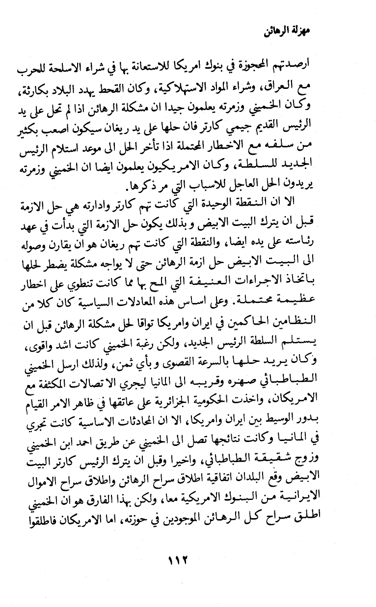 الا ان النقطة الوحيدة التي كانت تهم كارتر وادارته هي حل الازمة قبل ان يترك البيت الابيض وبذلك يكون حل الازمة التي بدأت في عهد رئاسته على يده ايضا، والنقطة التي كانت تهم ريغان هو ان يقارن وصوله إلى البيت الابيض حل ازمة الرهائن حتى لا يواجه مشكلة يضطر لحلها باتخاذ الاجراءات العنيفة التي المح بها مما كانت تنطوي على اخطار عظيمة محتملة. وعلى اساس هذه المعادلات السياسية كان كلا من النظامين الحاكمين في ايران وامريكا تواقا لحل مشكلة الرهائن قبل ان يستلم السلطة الرئيس الجديد، ولكن رغبة الخميني كانت اشد واقوى، وكان يريد حلها بالسرعة القصوى وبأي ثمن، ولذلك ارسل الخميني الطباطبائي صهره وقريبه إلى المانيا ليجري الاتصالات المكثفة مع الامريكان، واخذت الحكومية الجزائرية على عاتقها في ظاهر الامر القيام بدور الوسيط بين ايران وامريكا، الا ان المحادثات الاساسية كانت تجري في المانيا وكانت نتائجها تصل إلى الخميني عن طريق احمد ابن الخميني وزوج شقيقة الطباطبائي، واخيرا وقبل ان يترك الرئيس كارتر البيت الابيض وقع البلدان اتفاقية اطلاق سراح الرهائن واطلاق سراح الاموال الايرانية من البنوك الامريكية معا، ولكن بهذا الفارق هو ان الخميني اطلق سراح كل الرهائن الموجودين في حوزته، اما الامريكان فاطلقوا