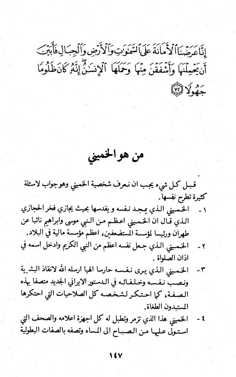 قبل كل شئ يجب أن نعرف شخصية الخميني وهو جواب لأسئلة كثير تطرح نفسها.