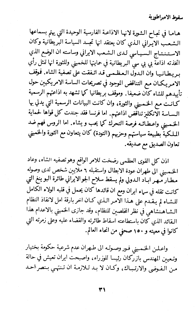 هاما في نجاح الثورة لانها الاذاعة الفارسية الوحيدة التي يهتم بسماعها الشعب الايراني الذي كان يعتقد انها تجسد السياسة البريطانية وكان الاستنتاج السياسي لدى الشعب الايراني وساسته ان الوضع الذي اتخذته اذاعة بي بي سي البريطانية في حمايتها للخميني وللثورة انها تمثل رأي بريطانيا وان الدول العظمى قد اتفقت على تصفية الشاه. فموقف الامريكان مع التناقض الموجود في تصريحات الساسة الامريكيين حول تأييدهم للشاه كان ضعيفا. وموقف بريطانيا كما تشهد به اذاعتهم الرسمية كانت مع الخميني والثورة، وان كانت البيانات الرسمية التي يدلي بها الساسة الانكليز تناقض اذاعتهم. اما فرنسا فقد جندت كل قواها لحماية الخميني واعطائه فرصة التحرك كما يحب ويشاء. اما الروس فهم ضد الملكية بطبيعة سياستهم وحزبهم (التودة) كان يتعاون مع الثورة والخميني تعاون الصديق مع صديقه.