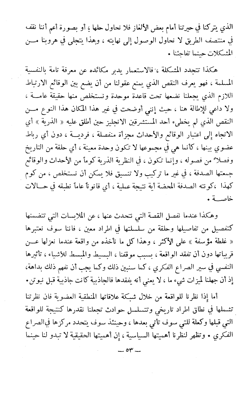 والواقع أنه في الوقت الذي كانت فيه ترجمة كتابي (شروط النهضة ومشكلات الحضارة) تحت الطبع، وأصبحت الترجمات العربية لمؤلفات أخرى متوقعة، ظهر في مكتبات القاهرة كتاب كبير يضم مجموعة المقالات التي نشرها السيد جمال الدين الأفغاني والشيخ محمد عبده في مجلتهما (العروة الوثقى)، والقارئ يعلم لا شك ما يكون لكتاب هذا عنوانه من قيمة لافتة، لأنه يعلم ما لهذا العنوان من صدى في تاريخ العالم الإسلامي الحديث، إذ أن كلمة (العروة الوثقى) تحمل دوي معركة فكرية سجلتها النهضة الإسلامية تحت قيادة الفقيدين العظيمين، وخاصة ما دار من جدل بينهما وبين أرنست رينان وجبرائيل هانوتو.