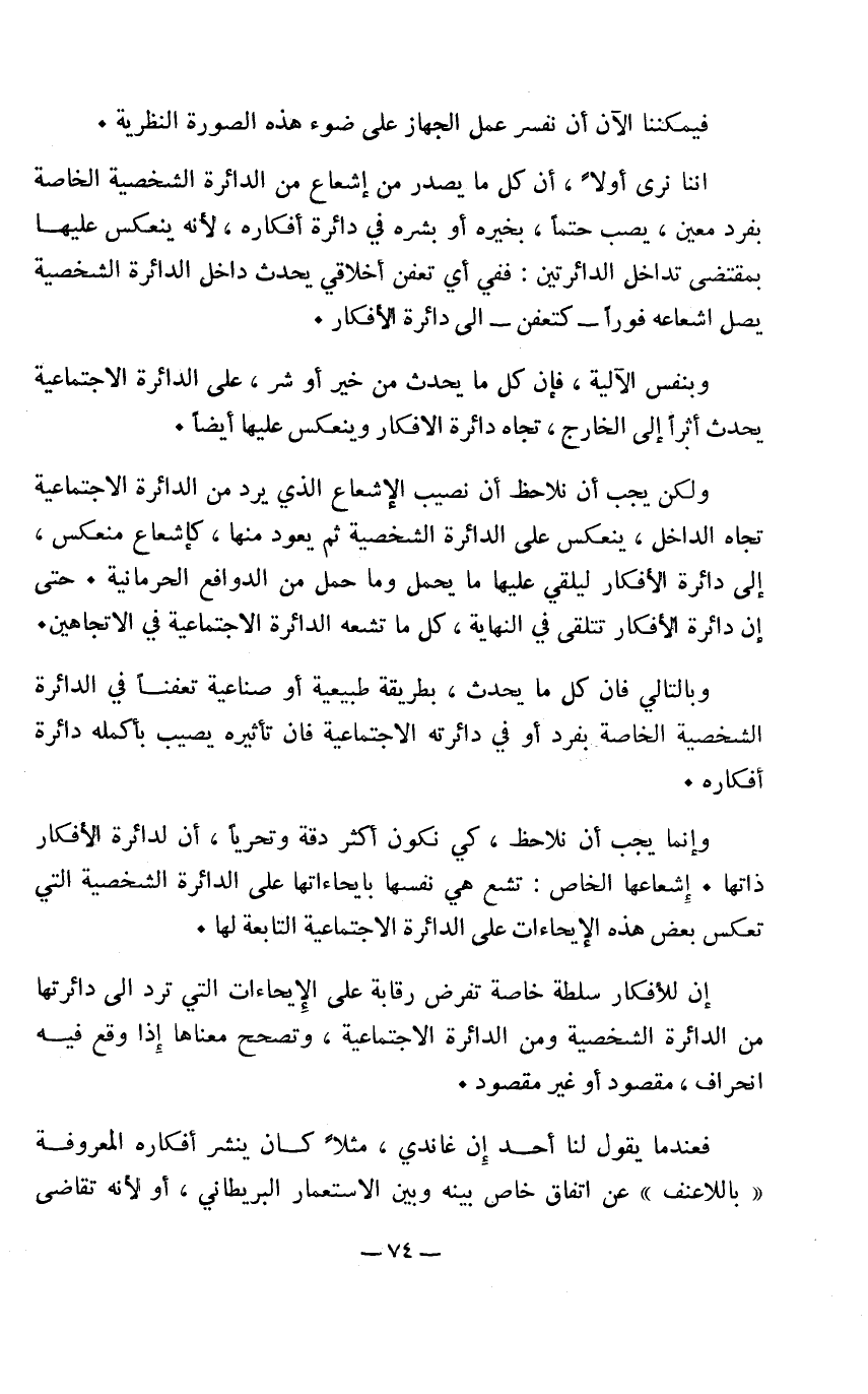 ولا شك أن هناك أشياء أخرى تؤيد هذه الضرورة، أشياء ناتجة عن الظروف الجديدة الخاصة بالبلاد الإسلامية والعربية، وعن الطور الجديد الذي يمر به الصراع الفكري في العالم عامة، وخاصة في البلاد التي لا زالت في المعركة التحررية.