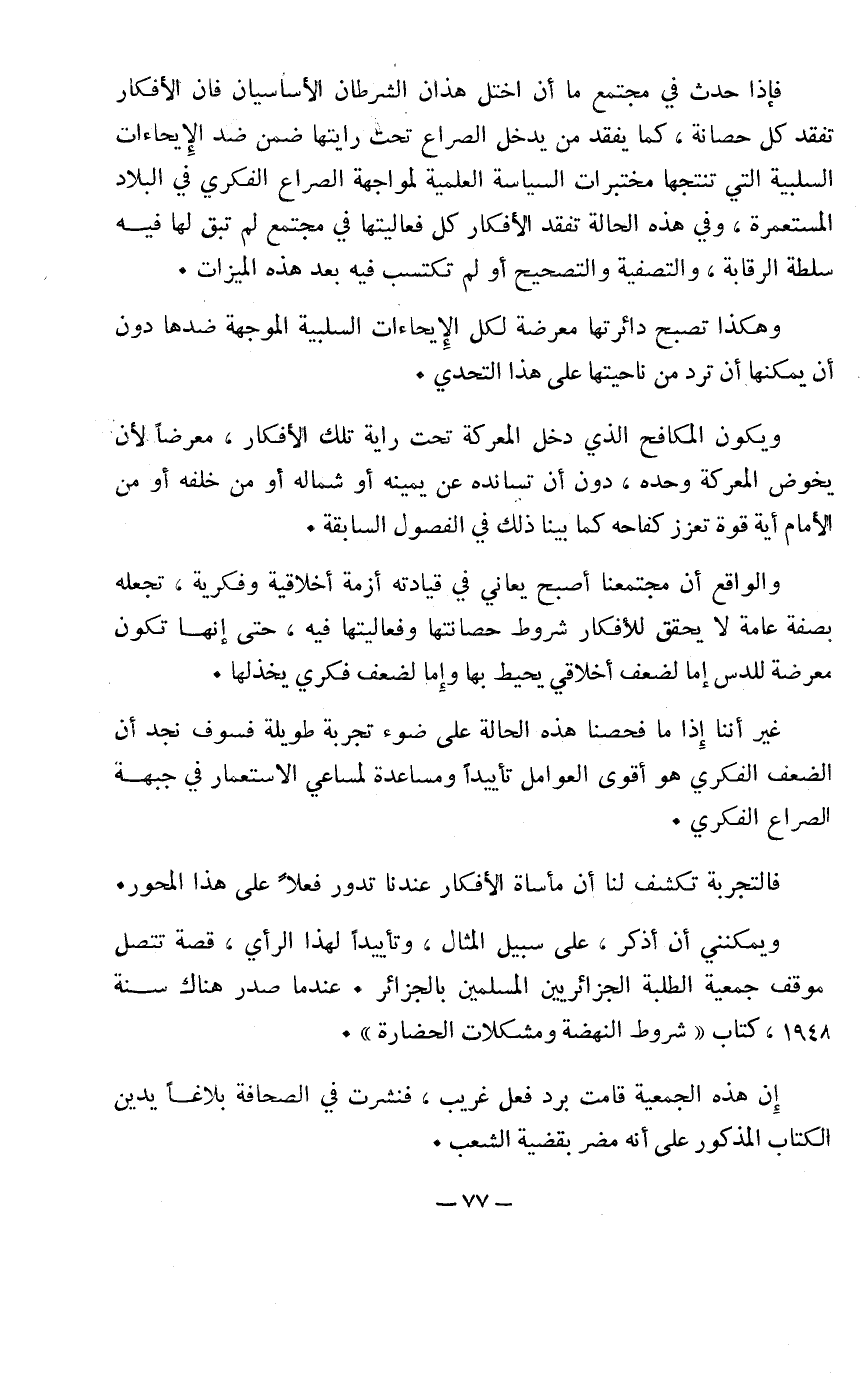 وبالآلية نفسها، فإن كل ما يحدث من خير أو شر، على الدائرة الاجتماعية يحدث أثراً إلى الخارج، تجاه دائرة الأفكار وينعكس عليها أيضاً.