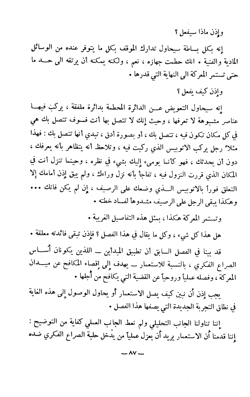 ربما إنك أيها القارئ الكريم لا تتصور بسهولة، أن مثل هذا السؤال يتصل بالصراع الفكري فالأحسن إذن أن نترك الموضوع.
