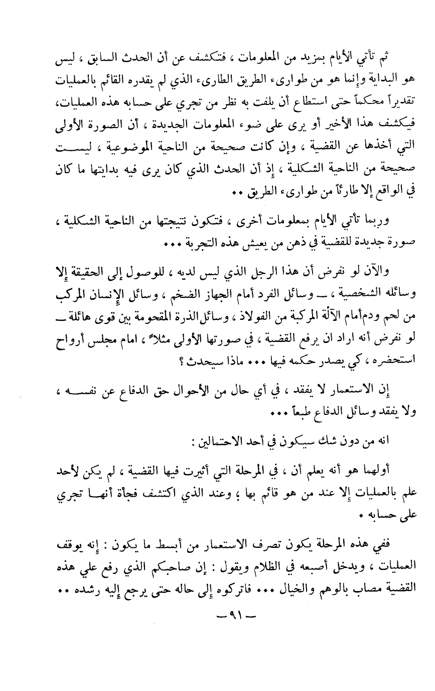 إنه بكل بساطة سيحاول تدارك الموقف بكل ما يتوافر عنده من الوسائل المادية والفنية. إنك حطمت جهازه، نعم، ولكنه يمكنه أن يرتقه إلى حد ما حتى تستمر المعركة إلى النهاية التي قدرها.