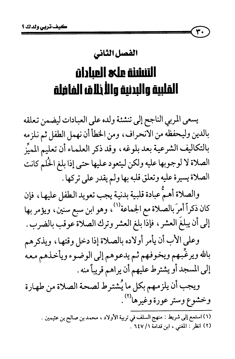 [الفصل الثاني التنشئة على العبادات القلبية والبدنية والأخلاق الفاضلة]