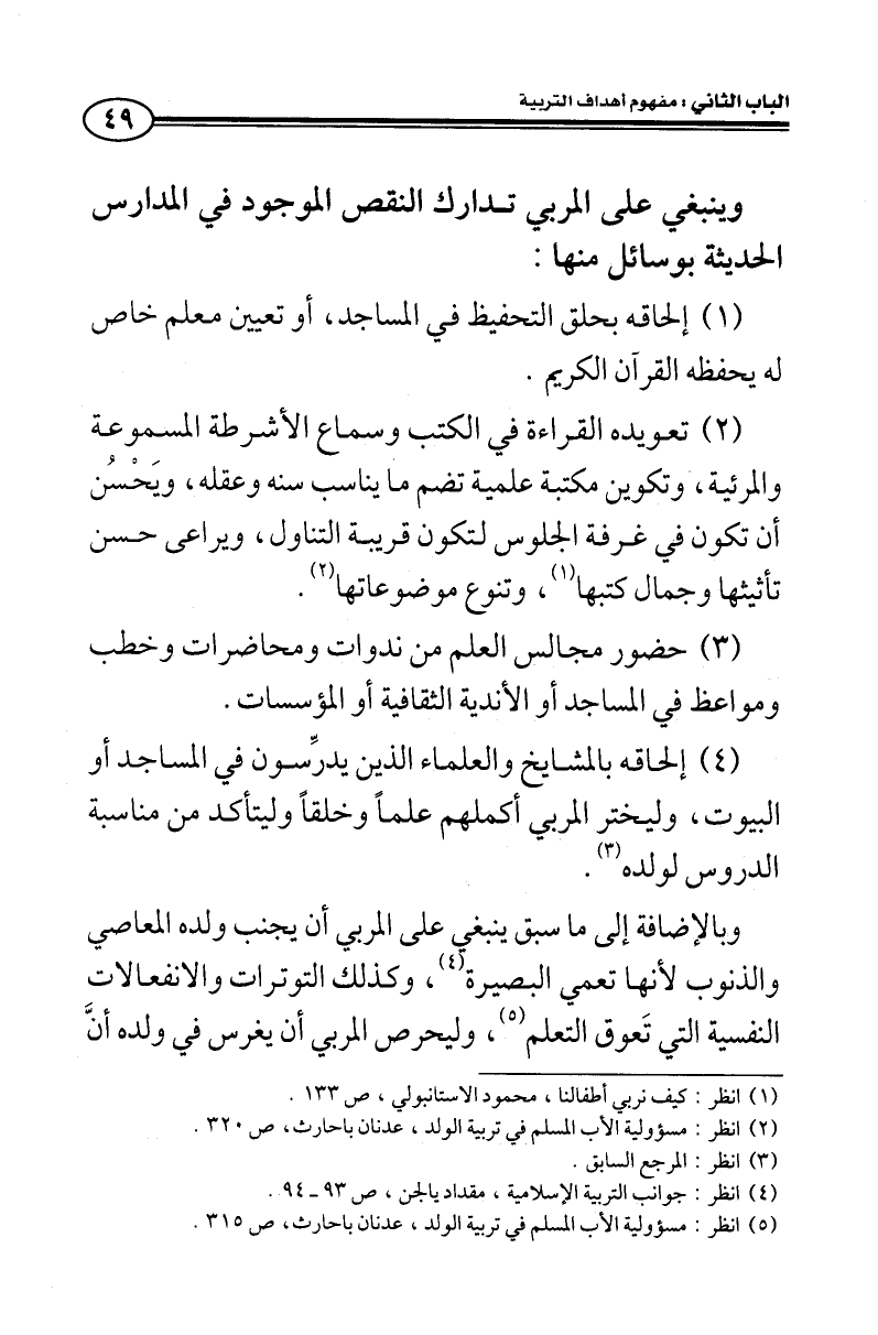 (¬5) انظر: مسئولية الأب المسلم في تربية الولد، عدنان باحارث، ص 315.