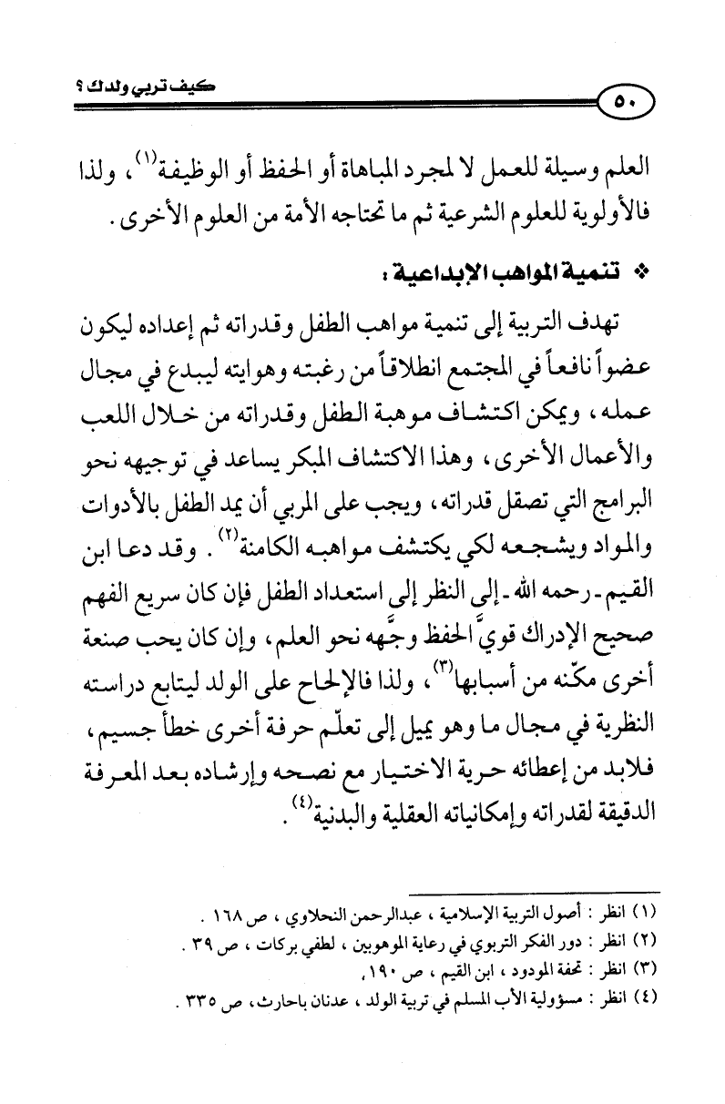 (¬4) انظر: مسئولية الأب المسلم في تربية الولد، عدنان باحارث، ص 335.