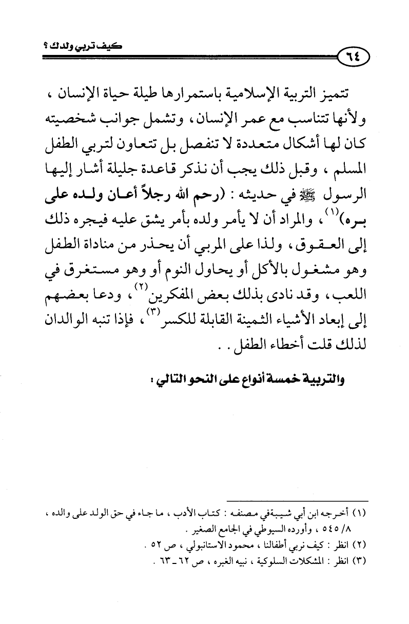(¬2) انظر: كيف نربي أطفالنا، محمود الاستانبولي، ص 52.