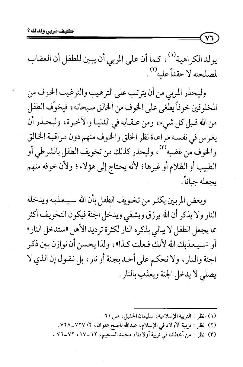 (¬3) انظر: من أخطائنا في تربية أولادنا، محمد السحيم، 12-17، 72- 76.