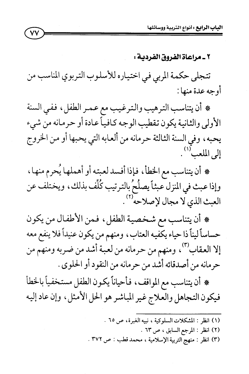 2 - مراعاة الفروق الفردية: تتجلى حكمة المربي في اختياره للأسلوب التربوي المناسب من أوجه عدة منها: