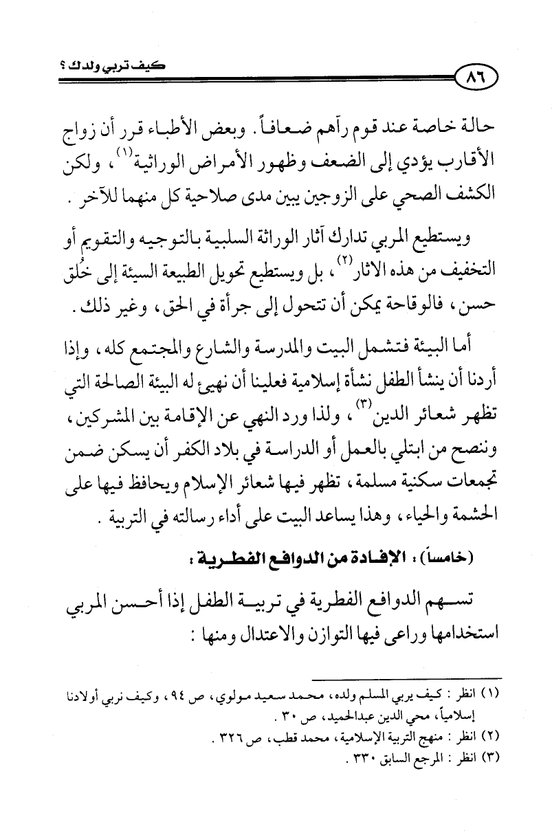 (¬1) انظر: كيف يربي المسلم ولده، محمد سعيد مولوي، ص 94، وكيف نربي أولادنا إسلاميا، محي الدين عبد الحميد، ص 30.