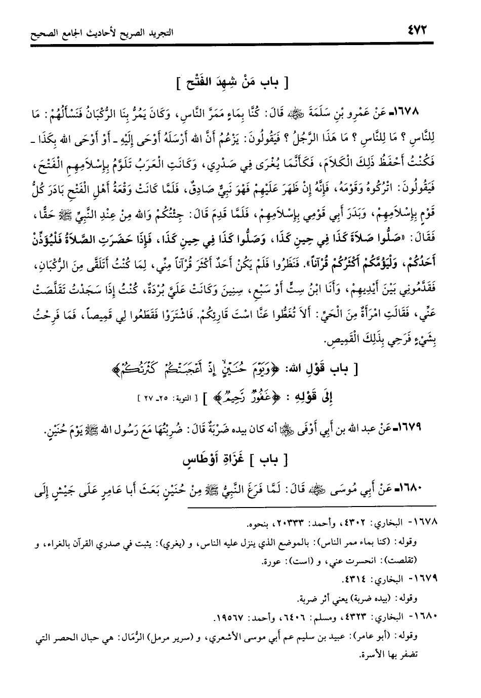 1680 - عَنْ أَبِي مُوسَى - رضي الله عنه - قَالَ: لَمَّا فَرَغَ النَّبِيُّ - صلى الله عليه وسلم - مِنْ حُنَيْنٍ بَعَثَ أَبَا عَامِرٍ عَلَى جَيْشٍ إِلَى