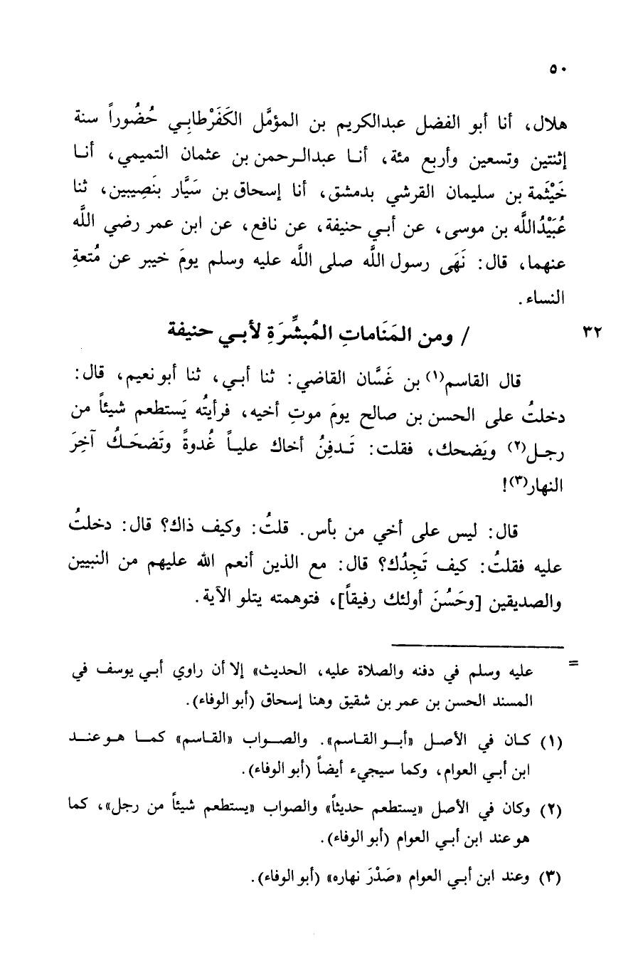 وَمِنَ الْمَنَامَاتِ الْمُبَشِّرَةِ لأَبِي حَنِيفَةَ