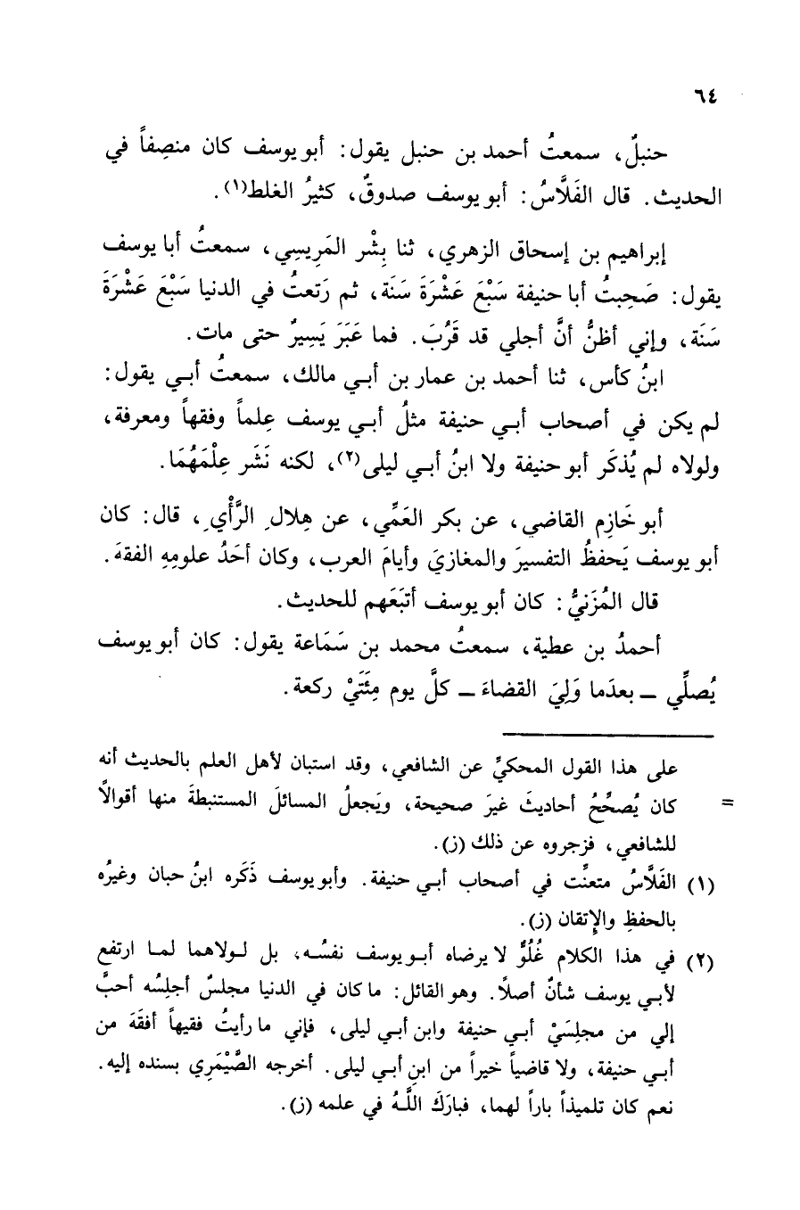 حَنْبَلٌ، سَمِعْتُ أَحْمَدَ بْنَ حَنْبَلٍ، يَقُولُ: «أَبُو يُوسُفَ كَانَ مُنْصِفًا فِي الْحَدِيثِ»