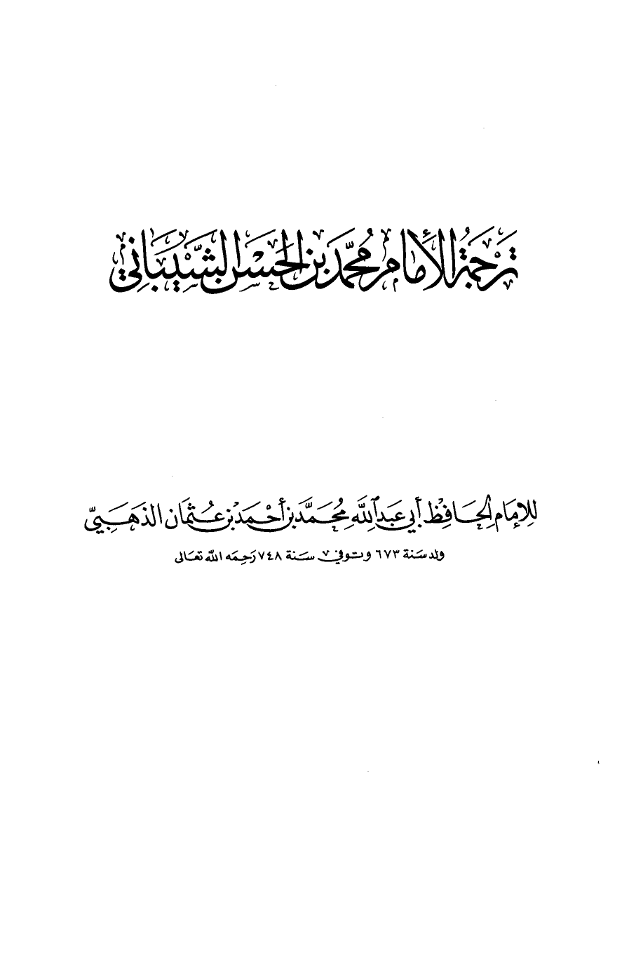 تَرْجَمَةُ الإِمَامِ مُحَمَّدِ بْنِ الْحَسَنِ الشَّيْبَانِيِّ لِلإِمَامِ الْحَافِظِ أَبِي عَبْدِ اللَّهِ مُحَمَّدِ بْنِ أَحْمَدَ بْنِ عُثْمَانَ الذَّهَبِيِّ الْمُتَوَفَّى سَنَةَ 748 قَدَّسَ اللَّهُ سِرَّهُ