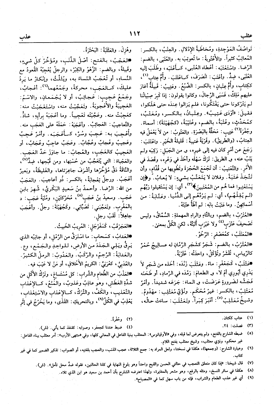 • العَجْبُ، بالفتح: أصْلُ الذَّنَبِ، ومُؤَخَّرُ كلِّ شيءٍ، وقَبيلةٌ، وبالضم: الزَّهْوُ والكِبْرُ، والرجلُ يُعْجِبُهُ القُعودُ مع النِّساءِ، أو تُعْجَبُ النِّساءُ به، ويُثَلَّثُ، وإنْكارُ مايَرِدُ عليكَ،
