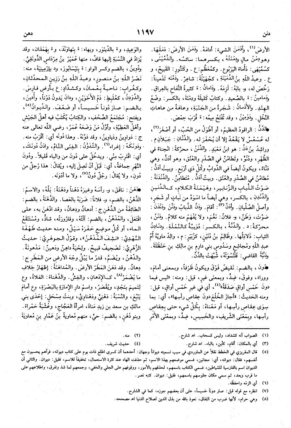 • الدَّنُّ: الراقودُ العظيمُ، أو أطْوَلُ من الحُبِّ، أو أصْغَرَ، له عُسْعُسٌ لا يَقْعُدُ إلا أن يُحْفَرَ له.