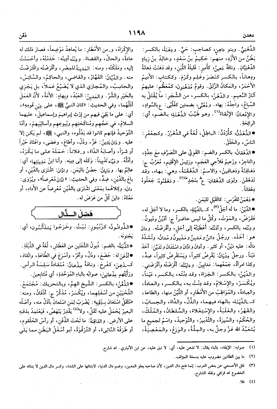كالدِّيْنَة، بالهاء فيهما، والذُّلُّ، والداءُ، والحِسابُ، والقَهْرُ، والغَلَبَةُ، والاسْتِعْلاءُ، والسلطانُ، والمُلْكُ، والحُكْمُ، والسِّيرَةُ، والتَّدْبيرُ، والتَّوْحيدُ، واسْمٌ لجميعِ ما يُتَعَبَّدُ الله عَزَّ وجلَّ به، والمِلَّةُ، والوَرَعُ، والمَعْصِيَةُ، والإِكْرَاهُ،