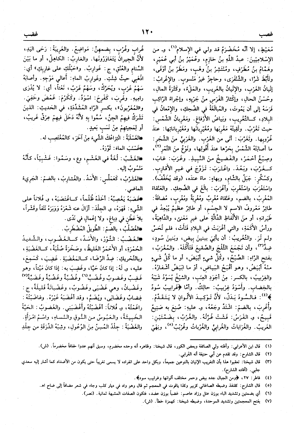 والإِغْرابُ: إتْيانُ الغَرْبِ، والإِتْيانُ بالغَرِيبِ، والمَلْءُ، وكَثْرَةُ المالِ، وحُسْنُ الحالِ، وإكْثارُ الفَرَسِ منْ جَرْيِهِ، وإجْراءُ الرَّاكِبِ فَرَسَهُ إلى أن يَمُوتَ، والمُبالَغَةُ في الضَّحِكِ، والإِمْعانُ في البِلادِ،