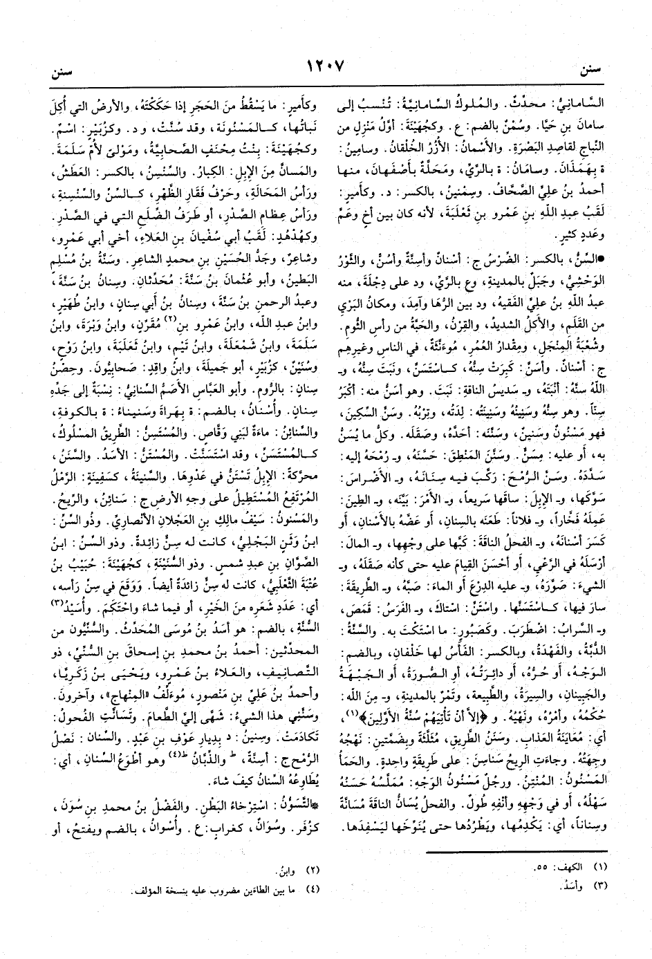 والسَّنَّةُ: الدُّبَّةُ، والفَهْدَةُ، وبالكسر: الفَأْسُ لها خَلْفانِ، وبالضمِ: الوَجْهُ، أَو حُرُّهُ، أَو دائِرَتُهُ، أوِ الصُّورَةُ، أَو الجَبْهَةُ والجَبِينانِ، والسِيرَةُ، والطَّبِيعة، وتَمْرٌ بالمدينةِ،