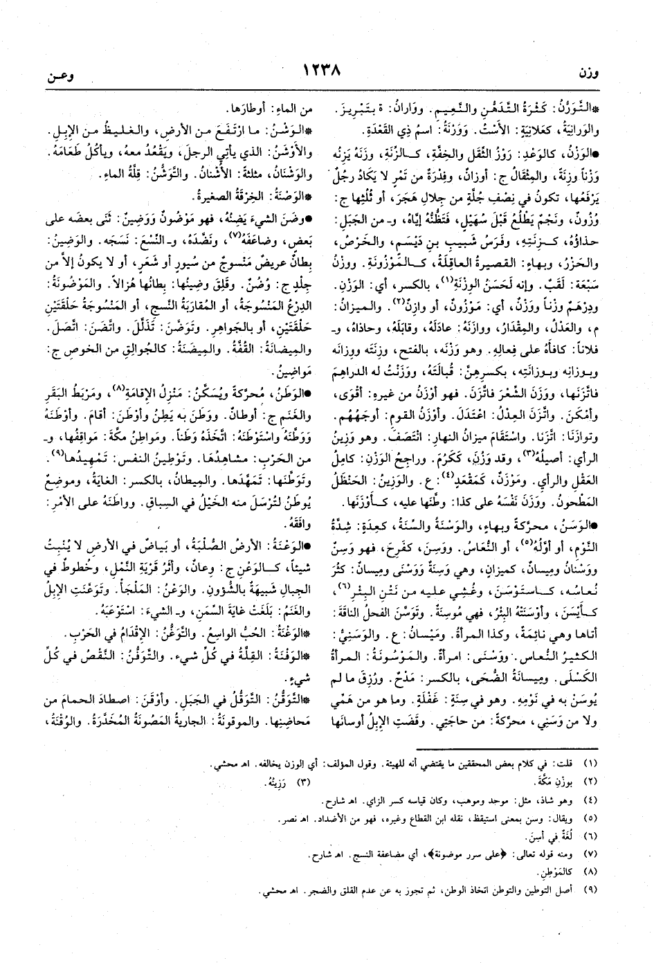 • الوَشْنُ: ما ارْتَفَعَ من الأرضِ، والغليظُ من الإِبِلِ.