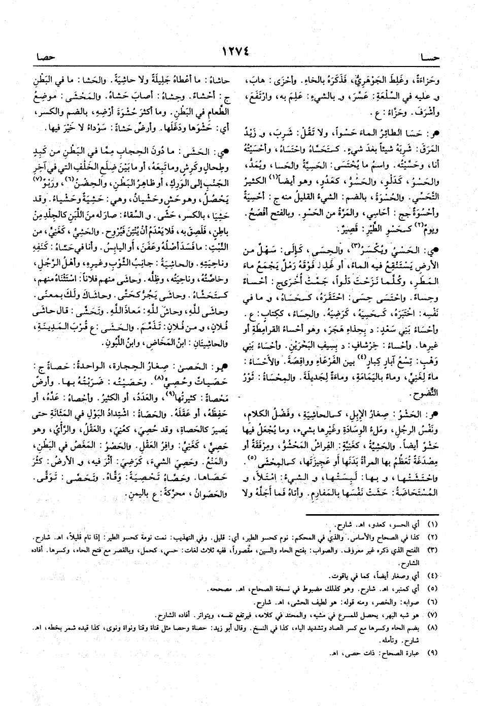 والأَحْساءُ: ماءٌ لِغَنِيٍّ، وماءٌ باليَمَامَةِ، وماءَةٌ لِجَديلَةَ.