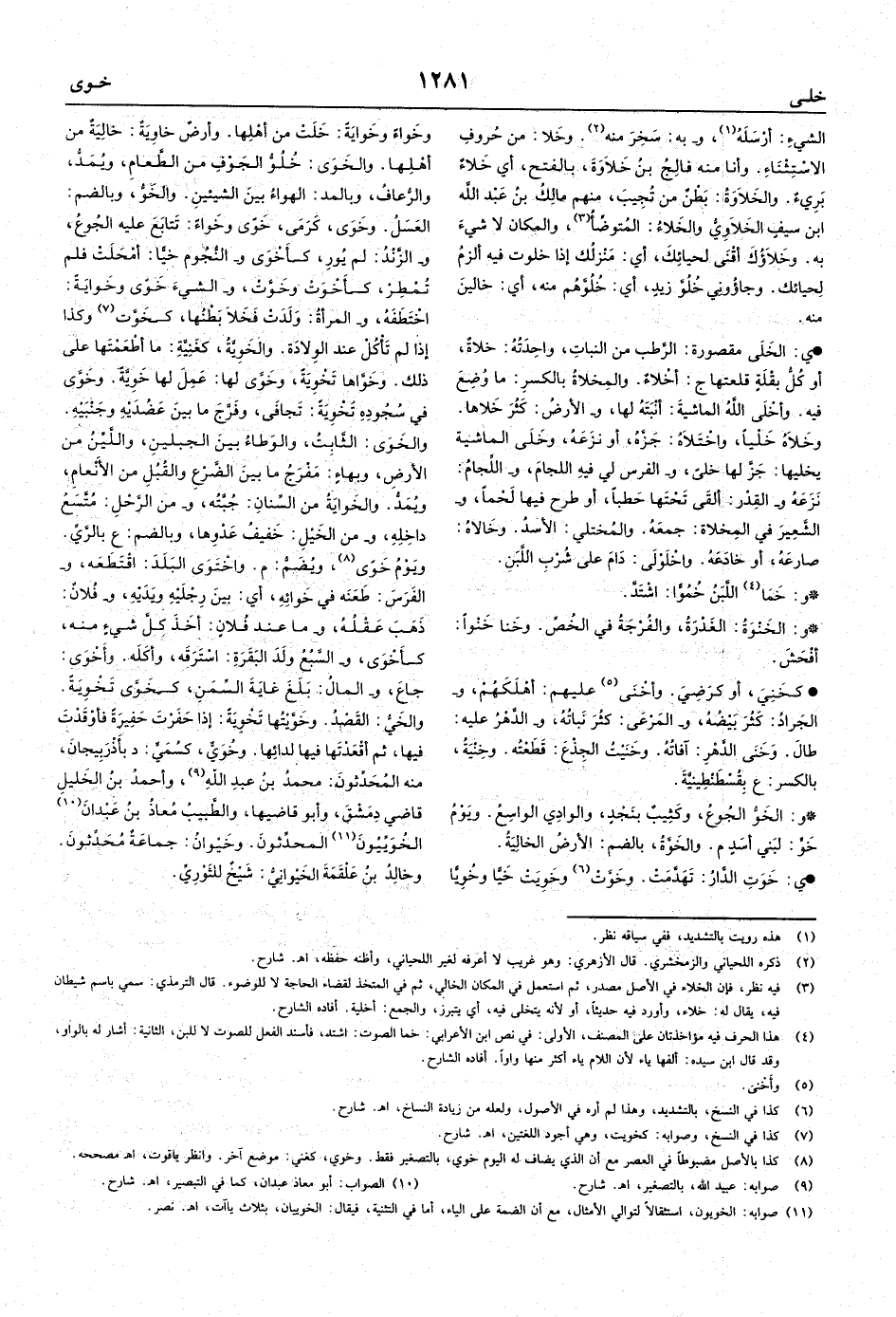 وأرضٌ خاوِيَةٌ: خالِيَةٌ من أهْلِها.