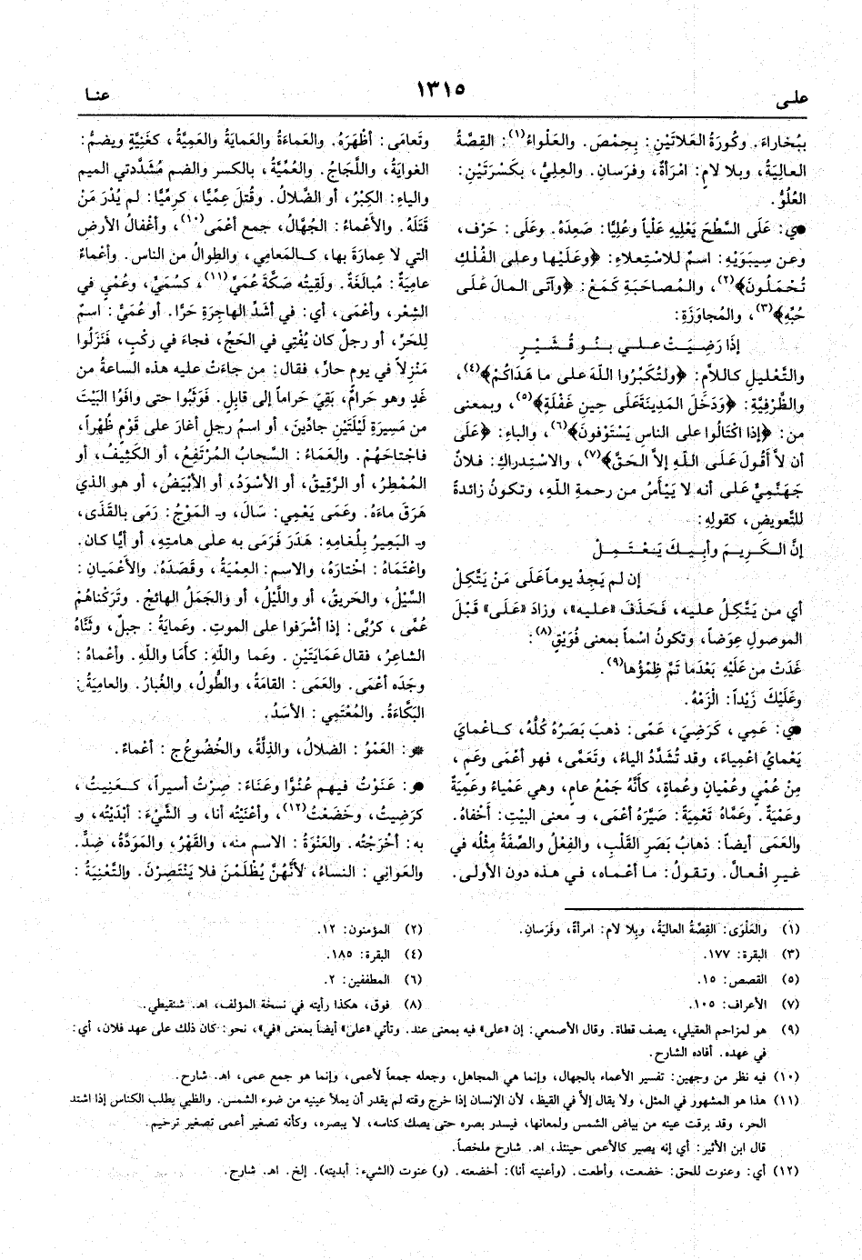 وأعْماءٌ عامِيَةٌ: مُبالَغَةٌ.