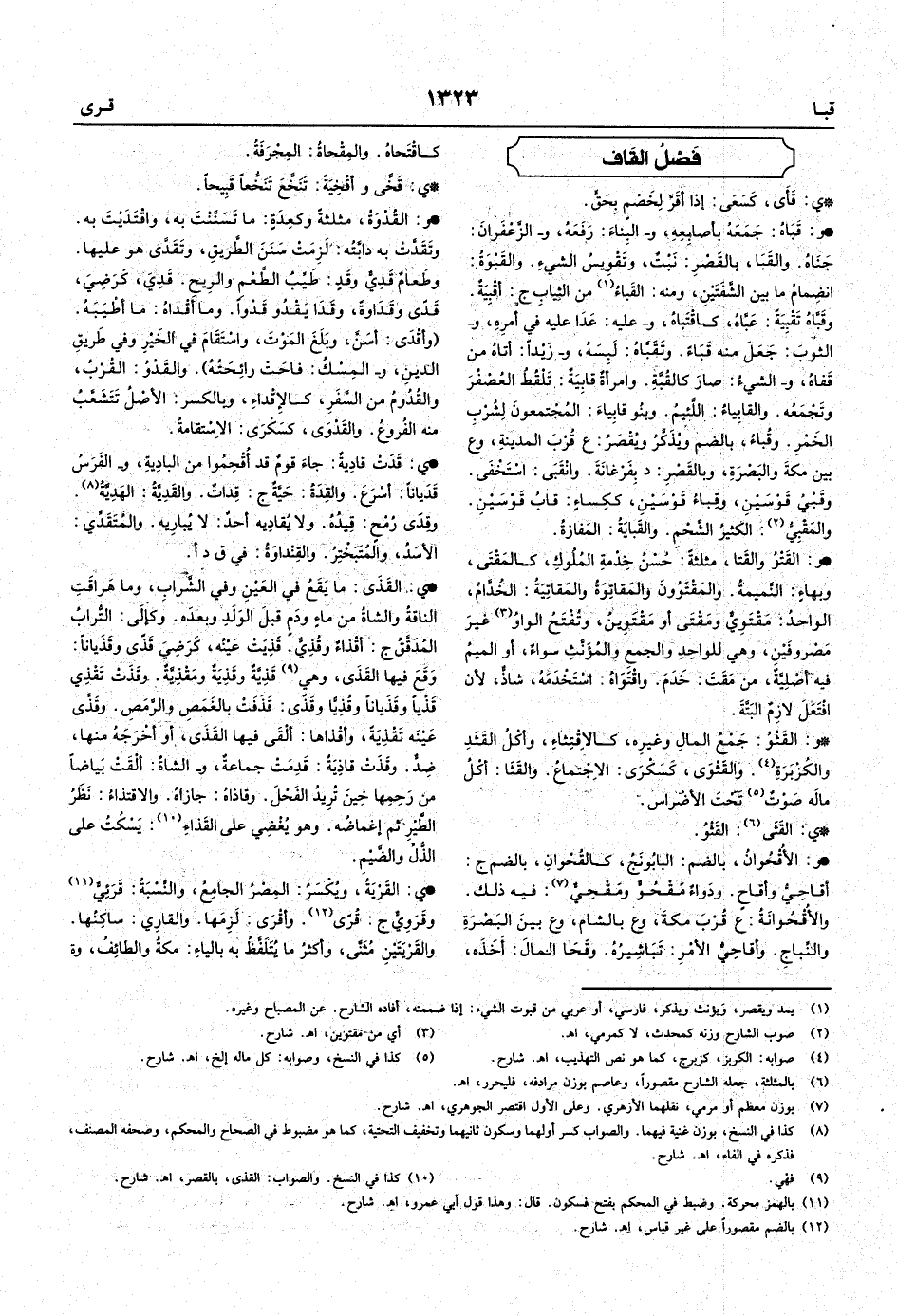 • ي: القَرْيَةُ، ويُكْسَرُ: المِصْرُ الجامِعُ، والنِّسْبَةُ: قَرَئِيٌّ وقَرَوِيٌّ