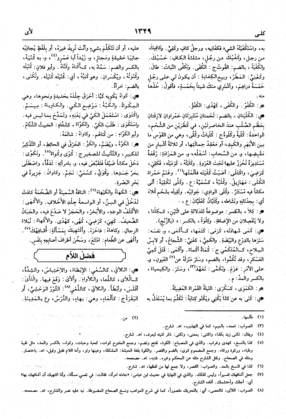 • ي: الكُلْيَتانِ، بالضم: لَحْمتانِ مُنْتَبِرَتَانِ حَمْراوانِ لازِقَتانِ بِعَظْمِ الصُّلْبِ عندَ الخاصرتَيْنِ، في كُظْرَيْنِ من الشَّحْمِ، الواحدةُ: كُلْيةٌ وكُلْوةٌ
