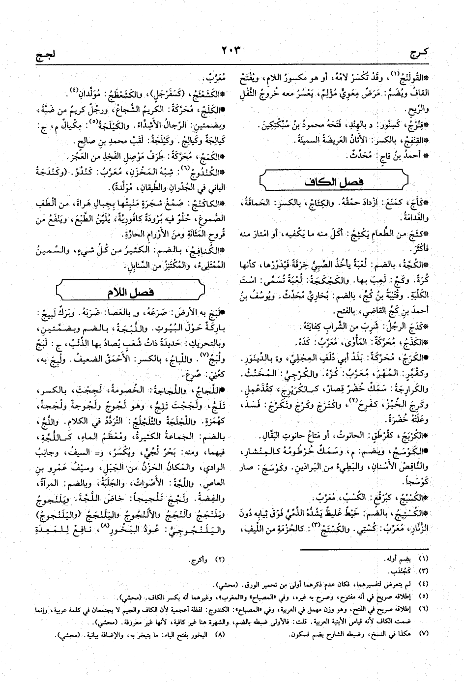 • الكَلَجُ، مُحَرَّكَةً: الكريمُ الشُّجاعُ، ورجُلٌ كريمٌ من ضَبَّةَ، وبضمتينِ: الرِّجالُ الأَشِدَّاءُ.