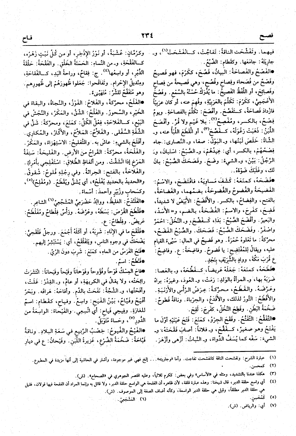 • الفَصْحُ والفَصاحَةُ: البيانُ، فَصُحَ، ككَرُمَ، فهو فَصيحٌ وفَصْحٌ من فُصَحاءَ وفِصاحٍ وفُصُحٍ، وهي فَصيحةٌ من فِصاحٍ وفَصائِحَ،