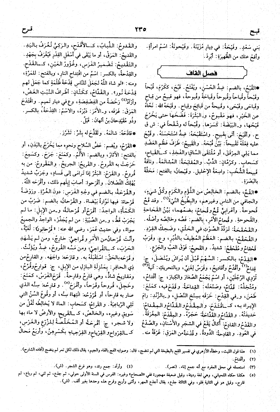 • القِدْحُ، بالكسر: السَّهْمُ قَبْلَ أن يُراشَ ويُنْصَلَ، ج: قِداحٌ وأقْدُحٌ وأقاديحُ، وفَرَسٌ لِغَنِيٍّ، وبالتحريكِ: آنيةٌ تُرْوِي الرَّجُلَيْنِ، أو اسْمٌ يَجْمَعُ الصِّغارَ والكِبارَ، ج: أقْداحٌ، ومُتَّخِذُهُ: قَدَّاحٌ،