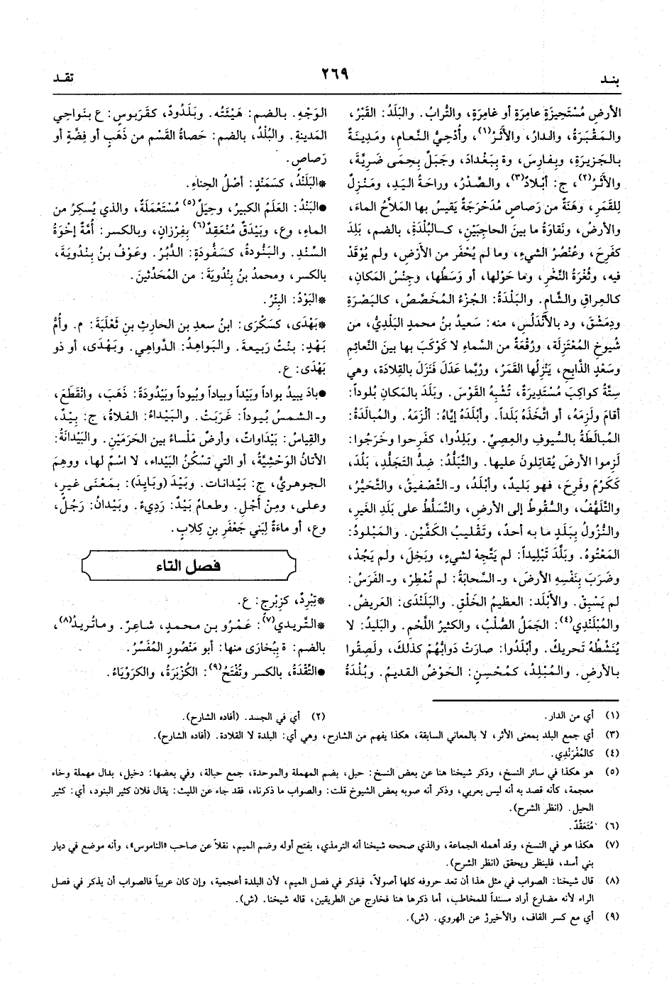 بَلِدَ كفَرِحَ، وعُنْصُرُ الشيءِ، وما لم يُحْفَر من الأَرْضِ، ولم يُوْقَدْ فيه، وثُغْرَةُ النَّحْرِ، وما حَوْلها، أو وَسَطُها، وجِنْسُ المَكانِ، كالعراقِ والشَّامِ.