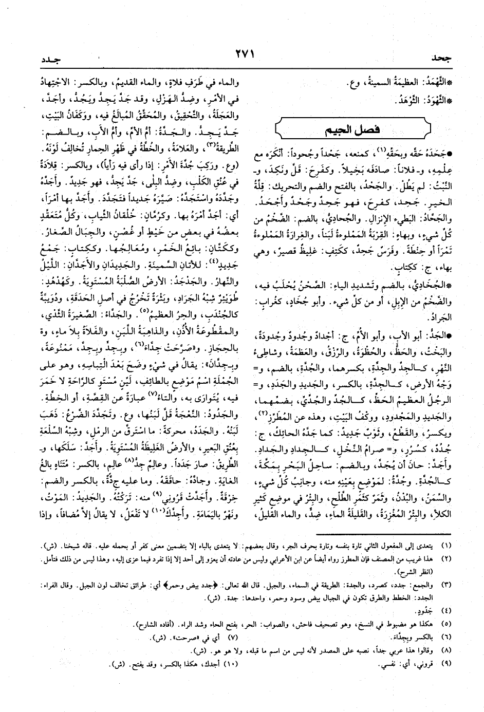 • الجَدُّ: أبو الأبِ، وأبو الأُمِّ، ج: أجْدَادٌ وجُدودٌ وجُدودَةٌ، والبَخْتُ، والحَظُّ، والحُظْوَةُ، والرِّزْقُ، والعَظَمَةُ، وشاطئ النَّهْرِ،