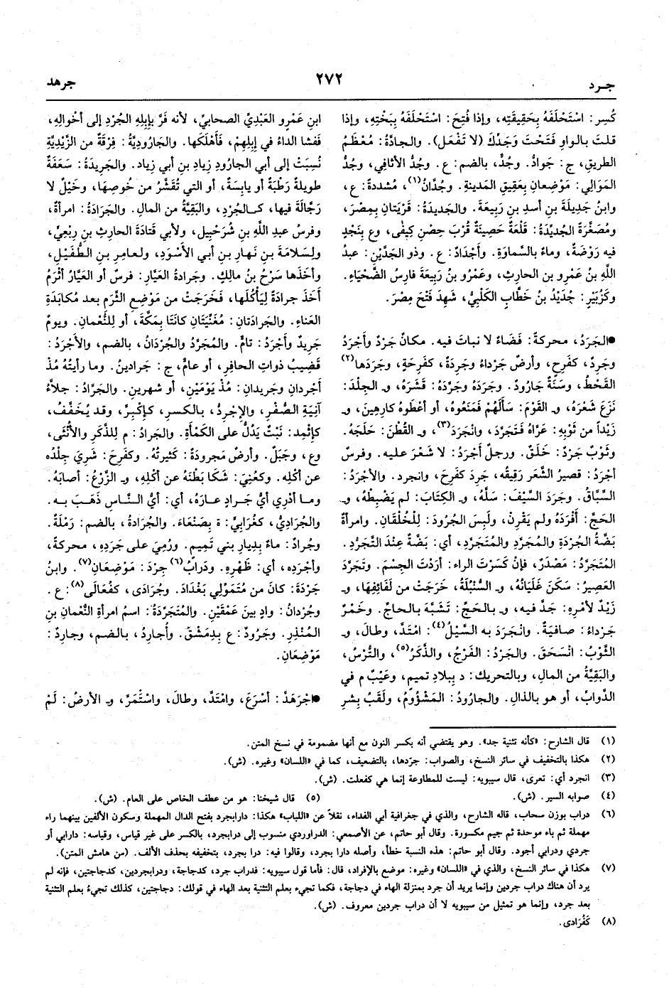 • الجَرَدُ، محركةً: فَضَاءٌ لا نباتَ فيه.